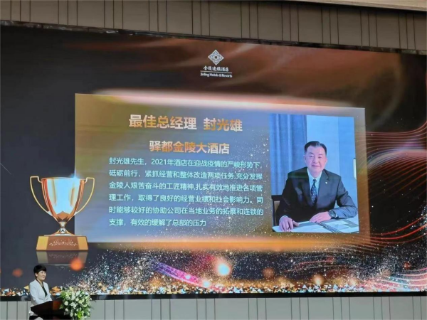 會(huì)議通報(bào)了金陵連鎖各成員酒店2022年上半年經(jīng)營管理情況,現(xiàn)場簽訂總經(jīng)理目標(biāo)責(zé)任書、廉政承諾書。會(huì)議公布各項(xiàng)評比獲獎(jiǎng)名單并進(jìn)行頒獎(jiǎng),驛都大酒店總經(jīng)理封光雄榮獲金陵連鎖酒店最佳總經(jīng)理、客房部徐紅琴榮獲金花飛揚(yáng)最佳客房服務(wù)員、驛都大酒店在2022年度金陵連鎖酒店“尊享金陵”6.18大促活動(dòng)中獲得綜合業(yè)績第三名。